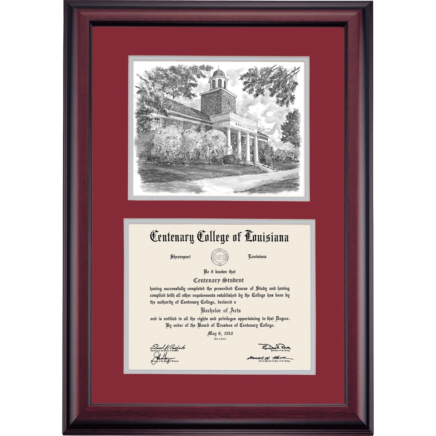 Celebrate your graduation in style with this handcrafted premier diploma frame which includes a Professional Print of Magale Library. Custom crafted to fit your Centenary College of Louisiana diploma, this frame features accent matting and high quality hardwood moulding.