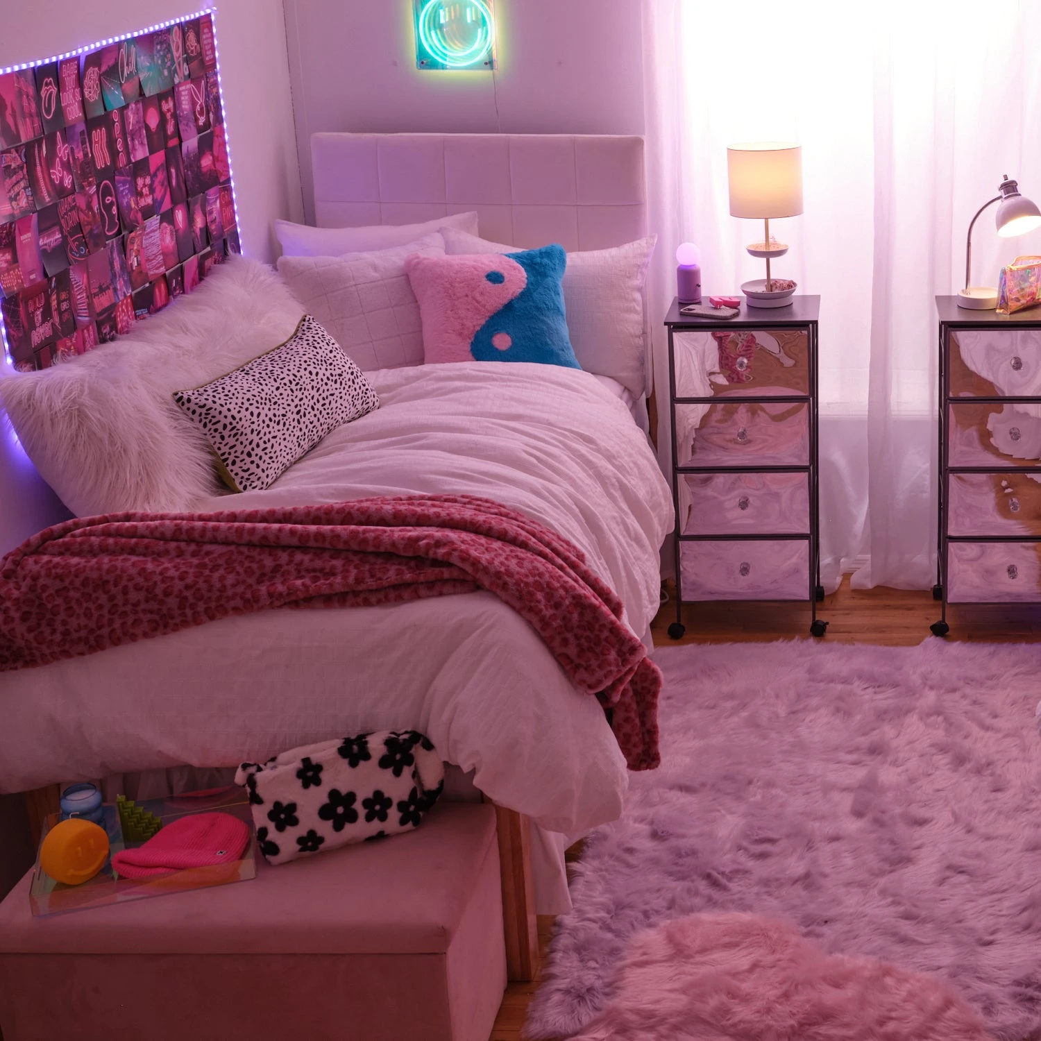 A Dormify X Cowgirl Clutch official collaboration throw blanket. This unique pink leopard plush throw blanket will add a pop of color to any room. With its soft touch faux fur feel, you will feel an elevated level of comfort! Due to the unique nature of the graphic printing process no two are exactly alike.