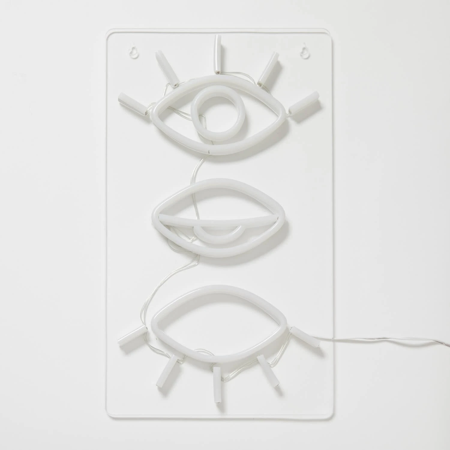 Luck for life. Shades of blue in this Evil Eye neon sign will cast a calm glow over your space. Features three different shapes and a playful ombré effect. Powered by plugging into an outlet.