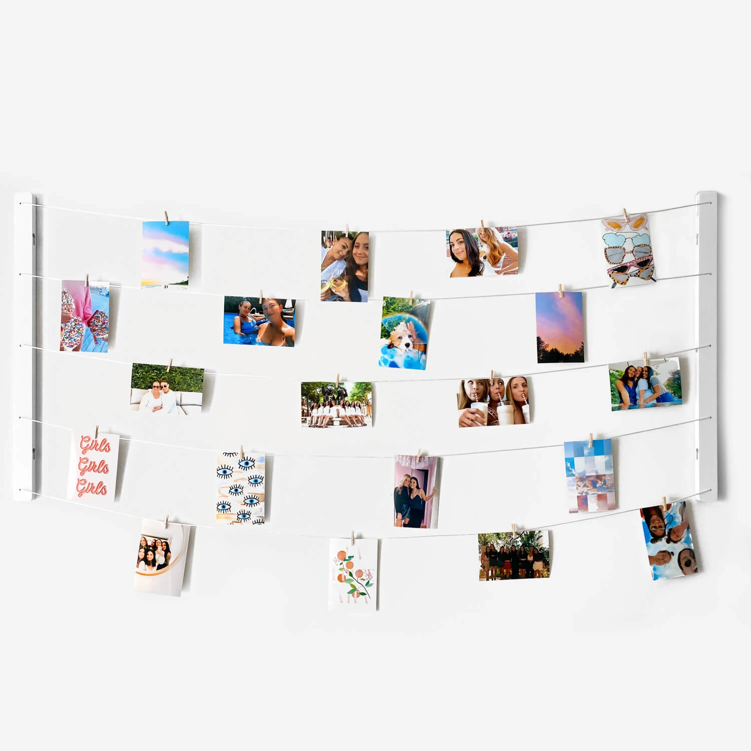 Comes with mini versions of our bestselling posters to mix in with your favorite photos. The Hangit can easily adhere to the wall with Command Strips. No assembly required.