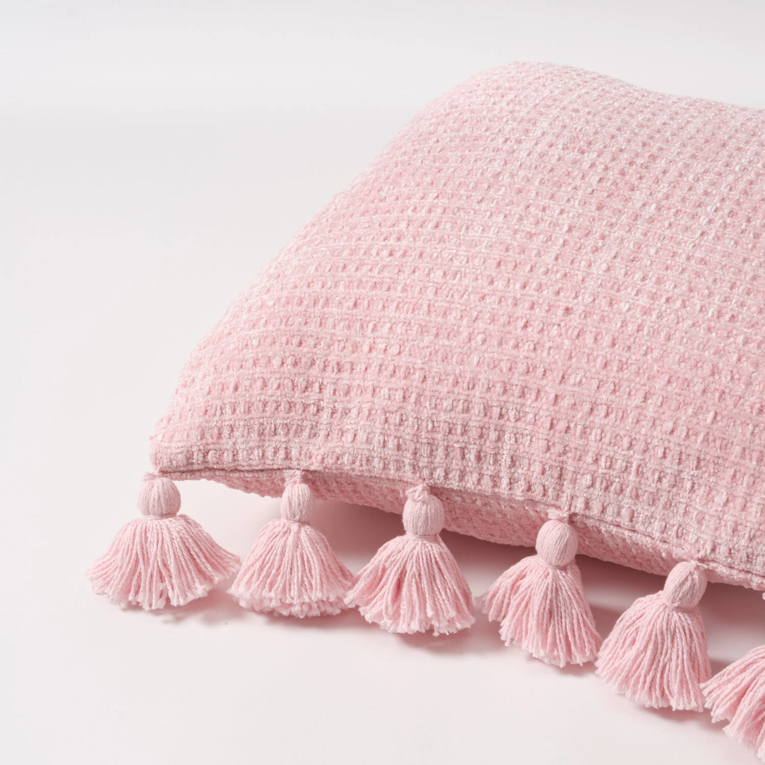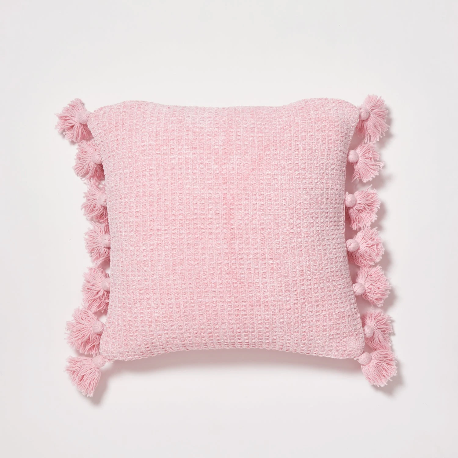 Up the softness in your space with this chenille accent pillow. The fuzzy texture of the fabric gives instant coziness, and the tassels surrounding the edge keep it interesting. Looks great alone, or as part of a pillow pile.