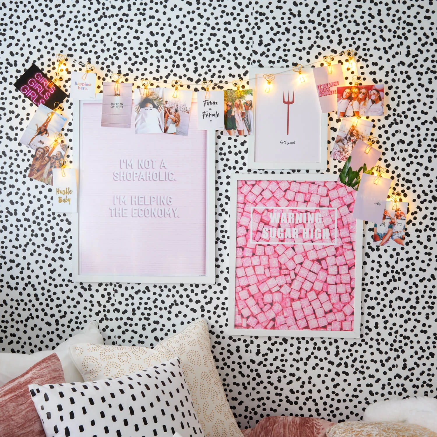 Sized to fit Dormify posters, or a custom collage that you create. Can be easily hung with adhesive strips.