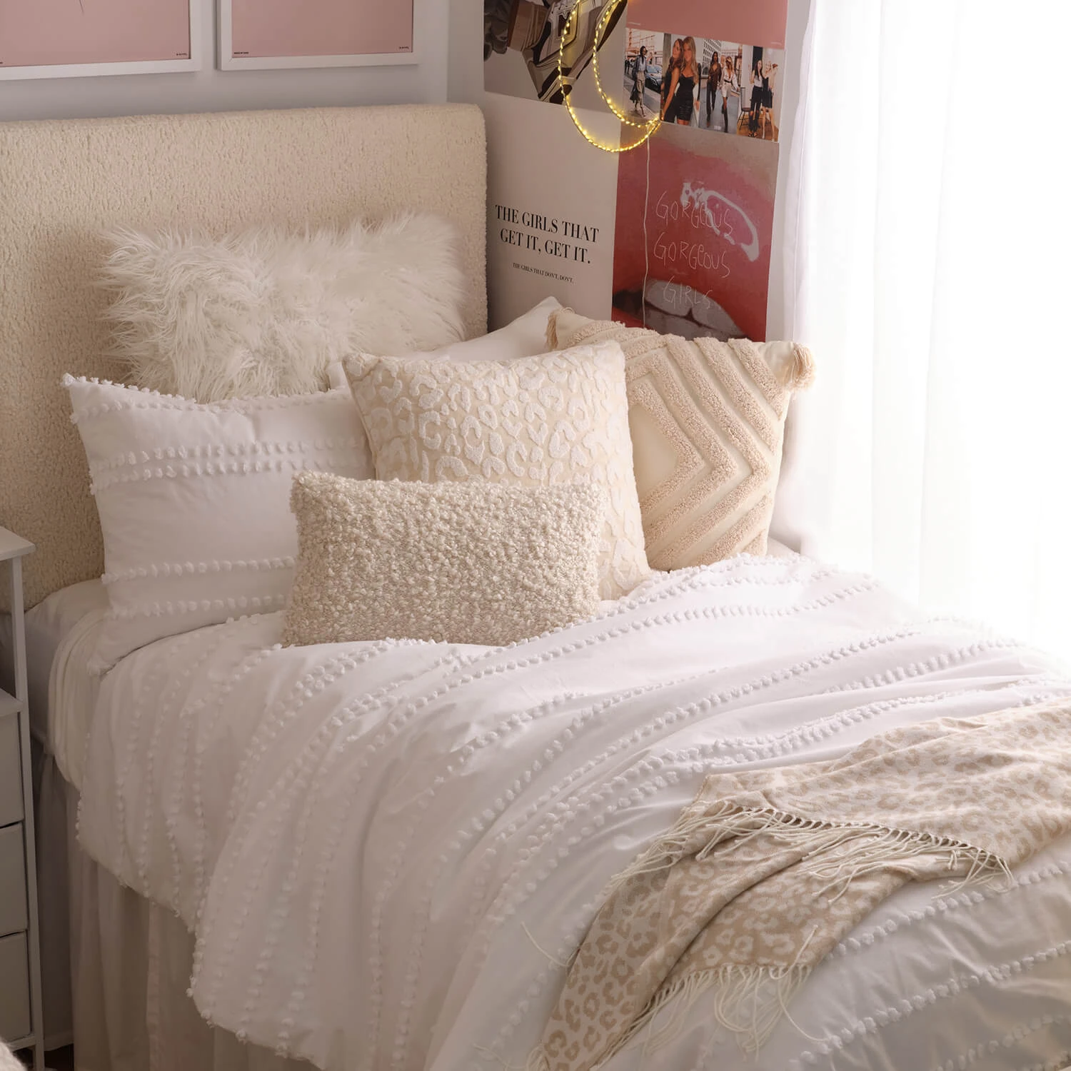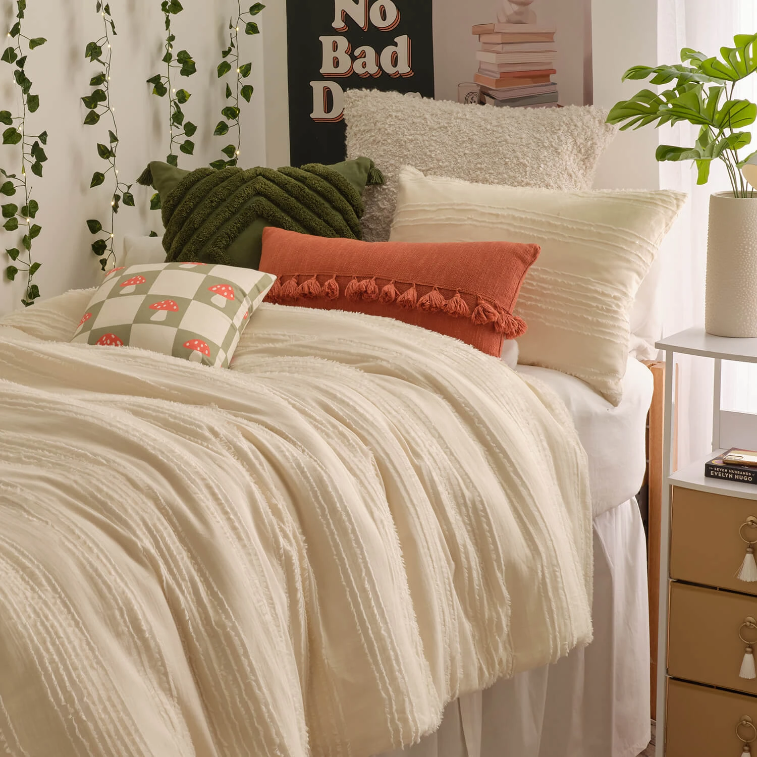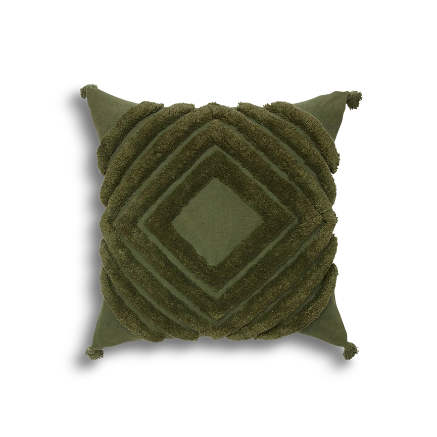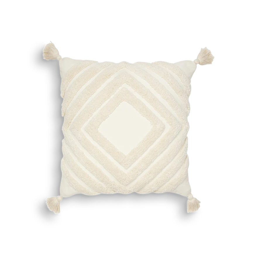 This tufted diamond pattern pillow cover is an instant boho girl favorite—and it’s perfect for layering. It comes with a tufted diamond front and solid cotton back in a variety of colors. Square pillow insert sold separately.