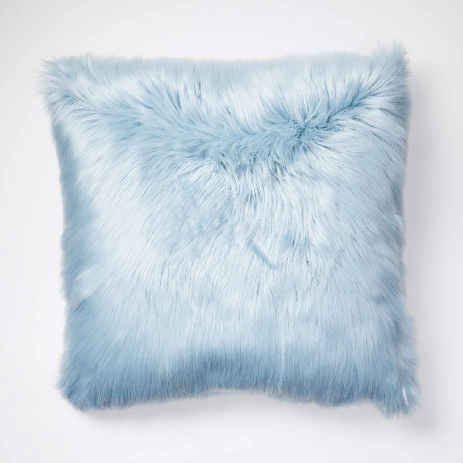 Snuggle up with this ultra-cozy pillow that comes in a large, huggable euro size. It’s covered in faux fur and comes in on-trend hues, making it the perfect funky statement piece.